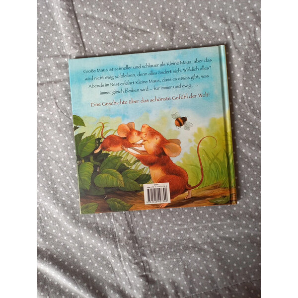 Das Buch handelt von zwei Mäusen: Von Großer Maus und Kleiner Maus. Beide spielen den Tag über und Kleine Maus stellt fest, dass Große Maus schneller und schlauer ist als sie. Doch Große Maus erklärt ihr, dass das nicht ewig so bleiben wird. Und auch der Umstand, dass Kleine Maus noch durch die kleinsten Löcher passt, durch die Große Maus längst nicht mehr hindurch kommt, wird sich irgendwann ändern. Denn Nichts ist für ewig, oder vielleicht doch? Zurück im Nest erzählt Große Maus dann doch von etwas, das für immer und ewig gleich bleiben wird. Eine wunderschöne, kleine Geschichte!