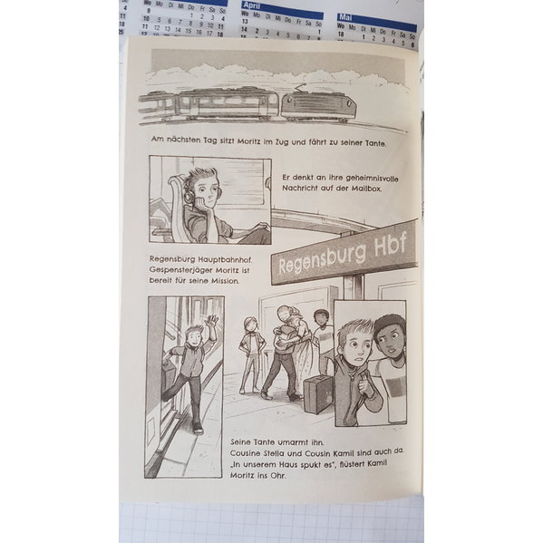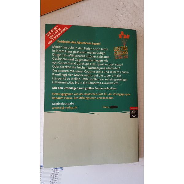 Gruselige Schatzsuche für unerschrockene GeisterjägerMoritz besucht in den Ferien seine Tante. In ihrem Haus passieren merkwürdige Dinge: Um Mitternacht ertönen seltsame Geräusche und Gegenstände fliegen wie von Geisterhand durch die Luft. Spukt es dort etwa? Oder stecken die frechen Nachbarjungs dahinter? Zusammen mit seiner Cousine Stella und seinem Cousin Kamil legt sich Moritz nachts auf die Lauer, um das Gespenst zu stellen. Dabei stoßen sie auf ein gruseliges Geheimnis, das bis in die Römerzeit zurückreicht ...Mit 32 Seiten Bildergeschichte von Timo Grubing
