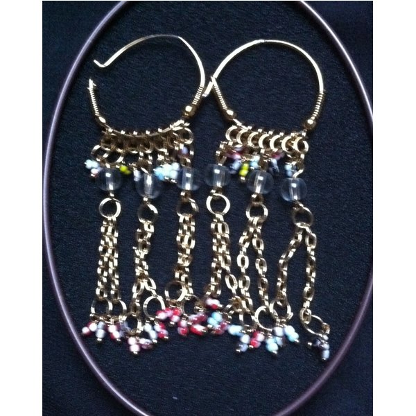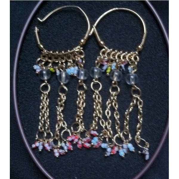 Goldene Kreolen mit bunten Steinen, ein toller Hingucker. Lässt sich wunderbar kombinieren und sehen immer gut aus.