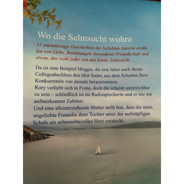 Sara braucht einen Wegweiser im Leben und findet unerwartete Hilfe bei ihrer kreativen Tante Miriam – bis diese einen ihrer eigenen Ratschläge etwas zu gut befolgt. Rory verliebt sich in Fiona, doch die scheint unerreichbar zu sein – schließlich ist sie Radiosprecherin und er nur ein aufmerksamer Zuhörer. Und eine alleinerziehende Mutter stellt fest, dass die neue, ungeliebte Freundin ihrer Tochter unter der aufmüpfigen Schale ein sehnsuchtsvolles Herz versteckt. Eine weitere Sammlung warmherziger Schätze aus dem Nachlass der beliebten Bestsellerautorin. 21 Erzählungen über Frauen, ihre Liebe, ihre Freundschaften und etwas, das wohl jede von ihnen kennt: Sehnsucht.