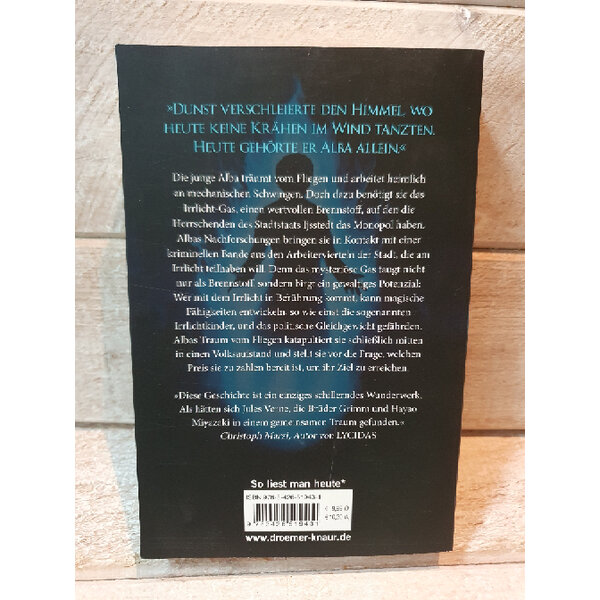 Denn neben seinem Wert als Brennstoff kann das Irrlicht einem Menschen magische Fähigkeiten verleihen – wenn man die Vergiftung überlebt. Albas Traum vom Fliegen katapultiert sie schließlich mitten hinein in einen Volks-Aufstand um Macht und Magie und stellt sie vor die Frage, welchen Preis sie zu zahlen bereit ist, um ihr Ziel zu erreichen...