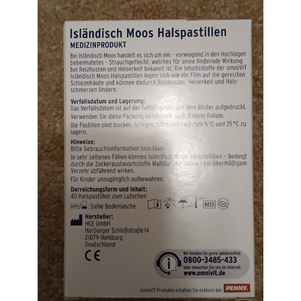Isländisch Moos Halspastillen, ohne Zuckerzusatz, bei Reizhusten Heiserkeit und Halsschmerzen, mit Vitamin C, Johannisbeer-Minz-Geschmack