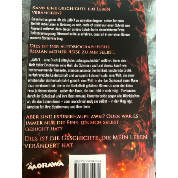 JAN/A erzählt die Geschichte meiner Aussöhnung mit meinem Borderline-Syndrom. In dem die Eine (mein ICH) einen Weg findet, den zu lieben, den niemand zu lieben vermag – den Dämon (mein Borderline-ICH) – fand auch ich einen Weg, mich als die zu lieben und anzunehmen, die ich bin.