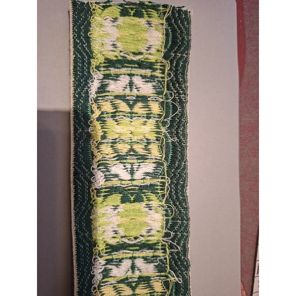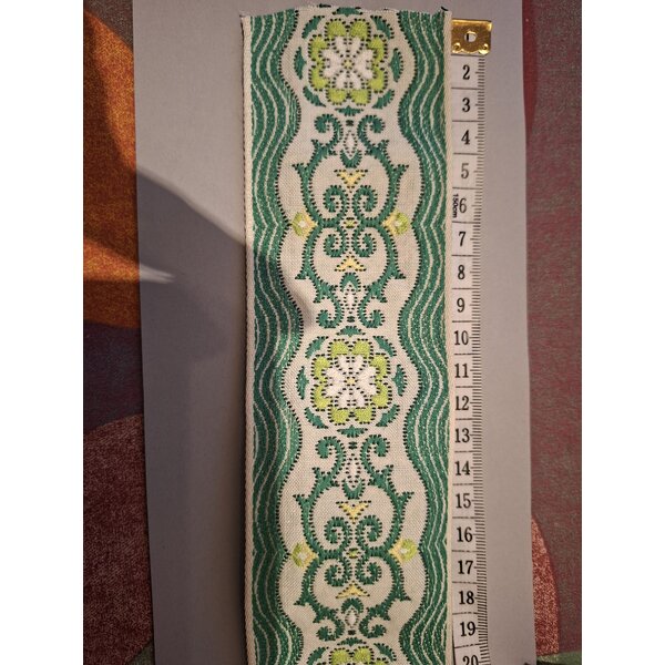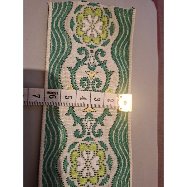 Breites, gewebtes Jacquardband mit dekorativem Muster, Maße siehe Foto. Ca. 2 m lang