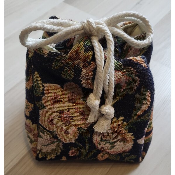 Japanischer Reisbeutel aus Brokat mit goldenem Lurexfaden. Das Glitzern kann ich leider nicht fotografieren.