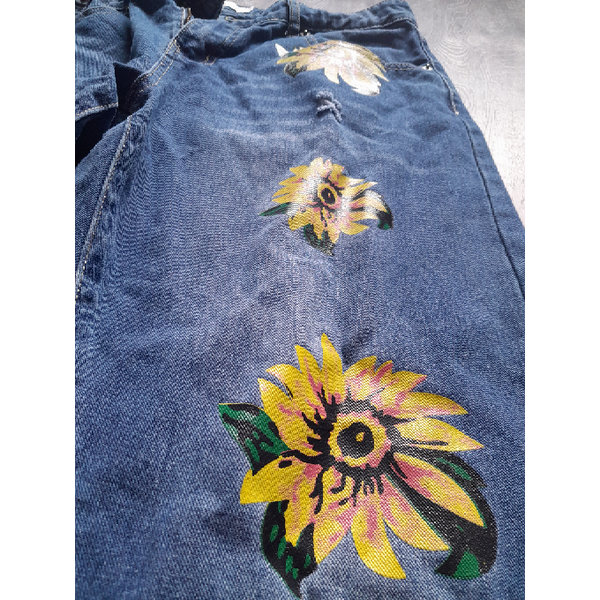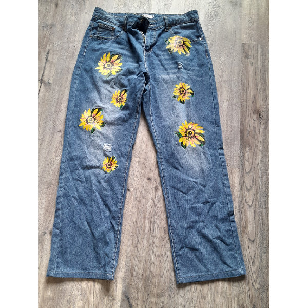 Neuwertige Jeans mit Sonnenblumen, Größe XL, entspricht 42/44