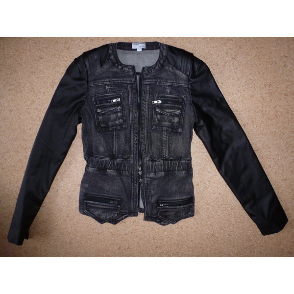 Ärmel und Schultern dieser figurbetonenden Jeansjacke sind aus Kunstleder. Gerne könnt ihr euch dazu einen Artikel für 1 Ticket aussuchen, bitte per PN mitteilen