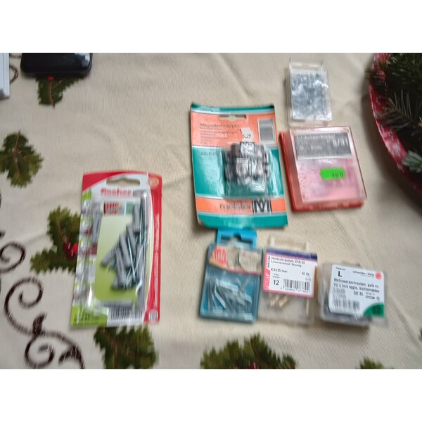 Universaldübel UX5 x 30R,+ Schrauben 3,5 x 45, Magnetschnaepper, Kunststoff braun, Mehrzweckschrauben 4,5 x 20, Holzschrauben DIN95, Zri,-Allzweckduebel, Schrauben, Haken