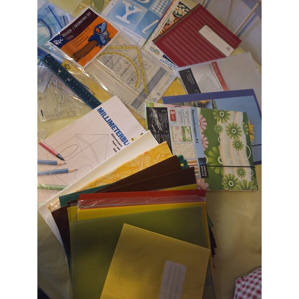 , Lineage,Geodreiecke,Parabel,Notenhefte, Sammelmappen DIN A4, Millimeterpapier, Ringbucheinlagen, 39 Hefthüllen