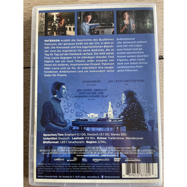 PATERSON erzählt die Geschichte des Busfahrers Paterson, der genauso heißt wie der Ort, in dem er lebt. Die Kleinstadt in New Jersey und ihre eigen-tümlichen Bewohner sind die Inspiration für seine Gedichte, die er Tag für Tag in der Mittagspause auf der Parkbank verfasst. Die Welt seiner Frau Laura dagegen ist im ständigen Wandel. Fast täglich hat sie neue Träume, jeder einzelne von ihnen ein anderes, inspirierendes Projekt. Paterson liebt Laura und sie ihn. Er unterstützt ihre neugefundenen Ambitionen und sie bewundert seine Gabe für Poesie.