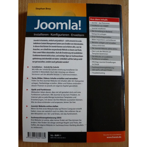 Joomla! ist kostenlos, einfach und praktisch - nicht umsonst ist es das beliebteste Content Management System zum Erstellen von Internetseiten. In diesem Buch lernen Sie Joomla! kennen und erfahren alles, was Sie brauchen, um schnell eine ansprechende Website zu bauen und Texte, Fotos sowie Videos einzustellen. Auch die Erweiterung mit zusätzlichen Funktionen kommt nicht zu kurz, und wichtige Tipps zur Suchmaschinenoptimierung sind ebenfalls mit dabei. Schließlich soll Ihre Seite ja nicht nur gut aussehen, sondern auch gefunden werden!