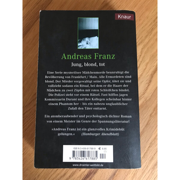Eine Serie mysteriöser Mädchenmorde beunruhigt die Bevölkerung von Frankfurt am Main. Alle Ermordeten sind blond. Der Mörder vergewaltigt seine Opfer, tötet sie und vollzieht sodann ein Ritual, bei dem er die Haare der Mädchen zu zwei Zöpfen mit roten Schleifchen bindet. Die Polizei steht vor einem Rätsel. Fast hilflos jagen Kommissarin Durant und ihre Kollegen scheinbar hinter einem Phantom her - bis ein nahezu unglaublicher Zufall den Täter enttarnt.