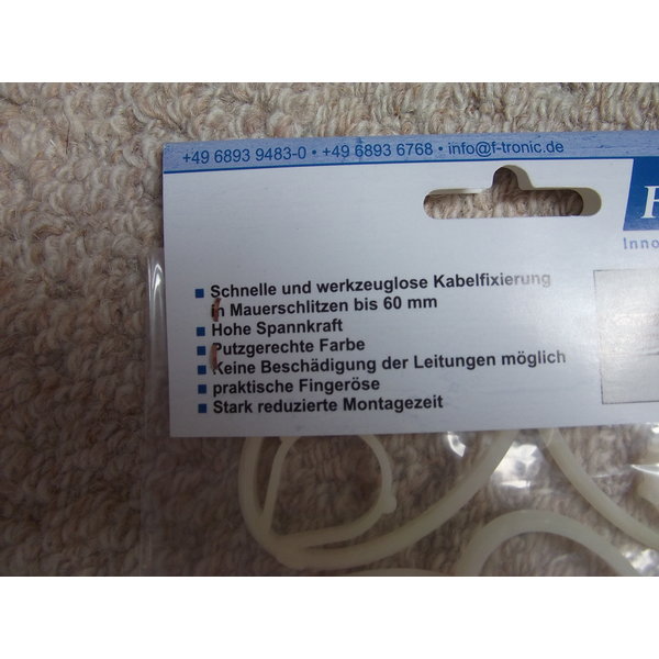 Fünf Kabelfixierer für bis zu 6 cm breite Mauerschlitze