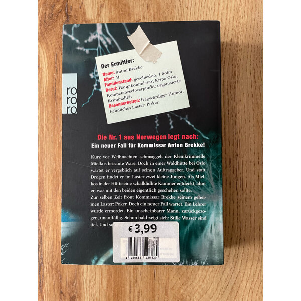 Die Nr. 1 aus Norwegen legt nach: Ein neuer Fall für Kommissar Anton Brekke! Kurz vor Weihnachten schmuggelt der Kleinkriminelle Mielkos brisante Ware. Doch in einer Waldhütte bei Oslo wartet er vergeblich auf seinen Auftraggeber. Und statt Drogen findet er im Laster zwei kleine Jungen. Als Mielkos in der Hütte eine schalldichte Kammer entdeckt, ahnt er, was mit den beiden eigentlich geschehen sollte. Zur selben Zeit frönt Kommissar Brekke seinem geheimen Laster: Poker. Doch ein neuer Fall wartet. Ein Lehrer wurde ermordet. Ein unscheinbarer Mann, zurückgezogen, unauffällig. Schon bald zeigt sich: Stille Wasser sind tief. Und schmutzig.Der Ermittler:Name: Anton Brekke Alter: 41 Familienstand: geschieden, 1 Sohn Beruf: Hauptkommissar, Kripo Oslo, Kompetenzschwerpunkt: organisierte Kriminalität Besonderheiten: fragwürdiger Humor, heimliches Laster: Poker