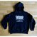 100 % Baumwolle, schwarz, mit Kapuze. Gr XXL (Brustweite 72 cm). Dicke Qualität.