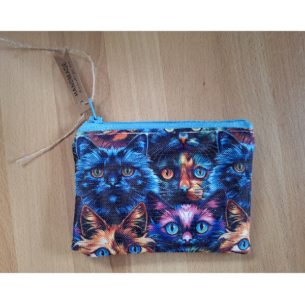 Kleines Täschchen mit RV, Motiv Beidseitig. Dieser Stoff ist abwischbar und somit fester als bei den anderen Täschchen. Sehr gute Verarbeitung.