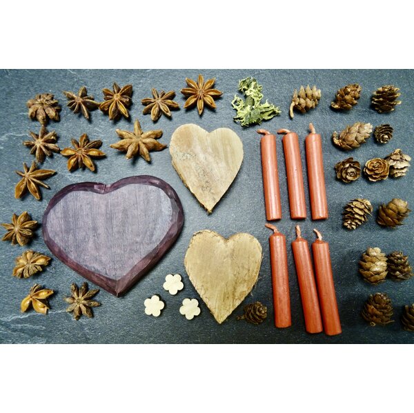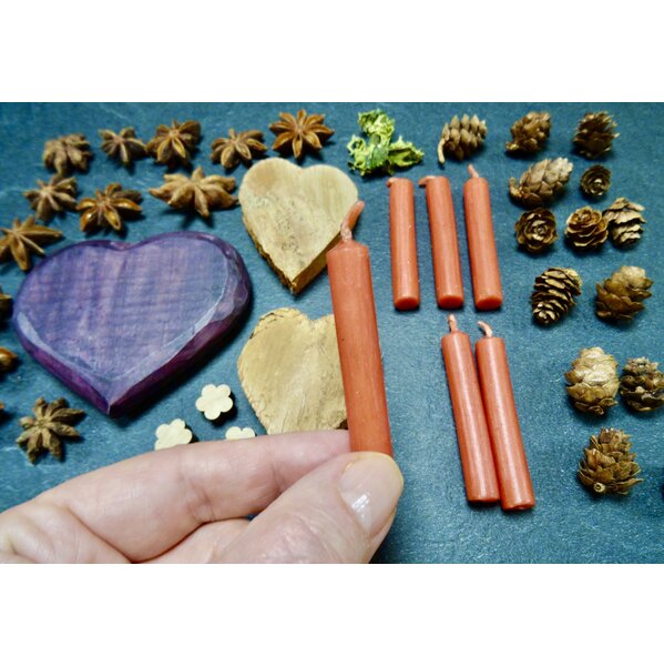 6 rote Kerzen und die abgebildete Deko. Alles vom Foto