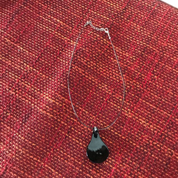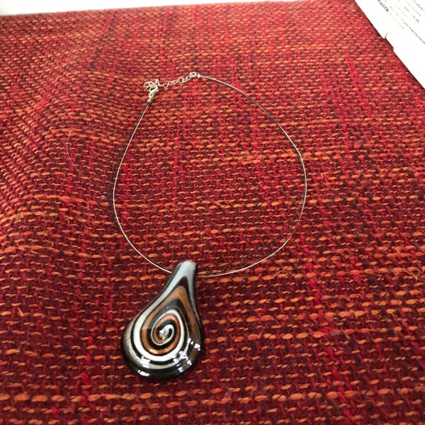tropfenförmiger Glasanhänger, Rückseite schwarz, vorn weiss,goldglitzrig, schwarz