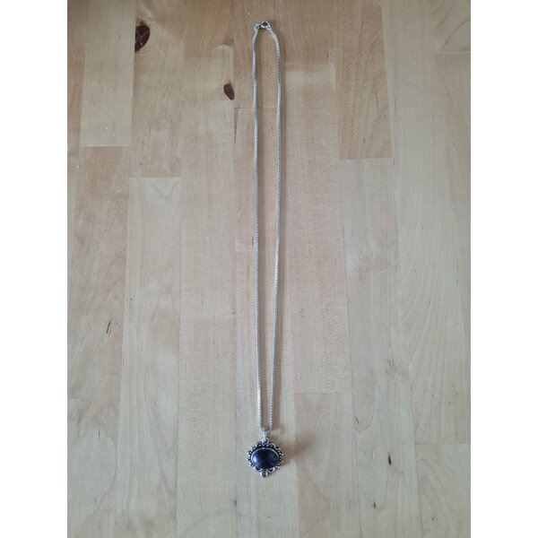 Länge Kette 60 cm. Der Anhänger ist 2,5 x 2 cm groß.