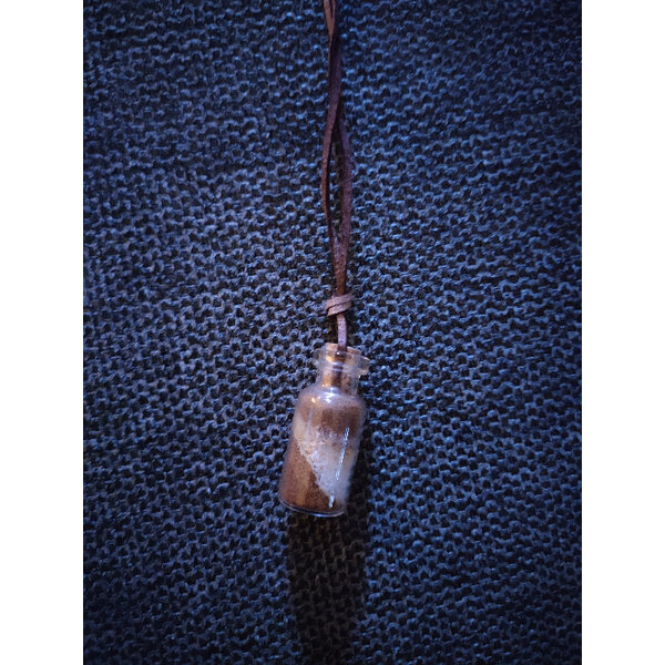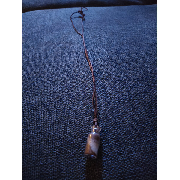 Kette mit Lederband und kleinen Fläschchen mit mehrfarbigem Sand