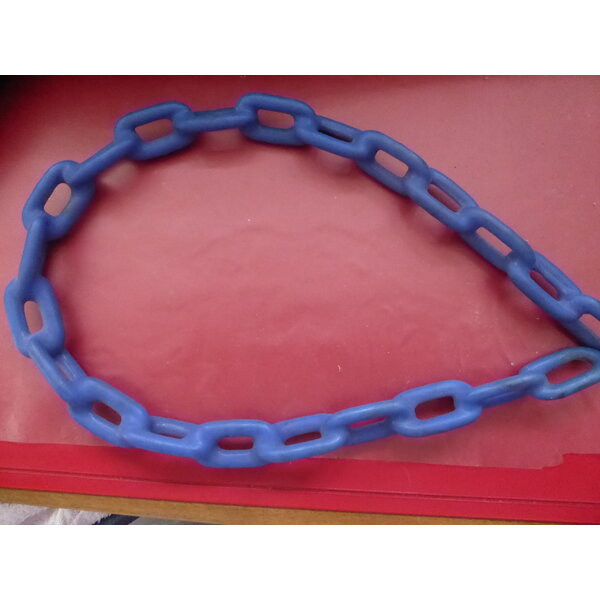 Kette, wahrscheinlich mit Gummi ummantelt. Gefühlmässig aus Gummi (Ummantelung).