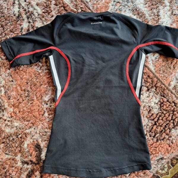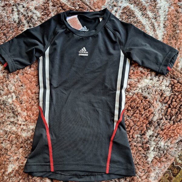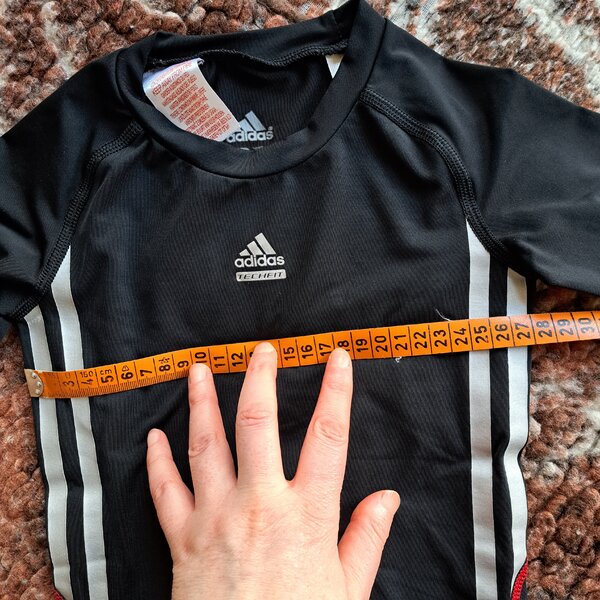 Gr. 128, mit Silberstreifen an den Seiten, 84 % Polyester, 16 % Elasthan, Gesamtlänge ca. 44 cm