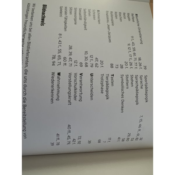 - Wissen aus allen Bereichen: Sprach- und Denkentwicklung, Bewegungsabläufe, kognitive und soziale Fähigkeiten, Beschäftigung, Erlebnispädagogik
