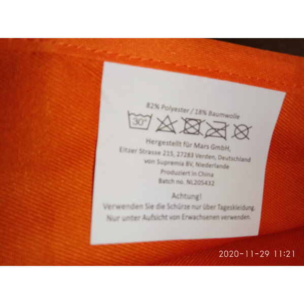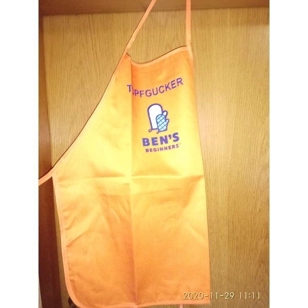Aus der Zugabe-Aktion von Uncle Ben's: eine leichte Schürze für die Weihnachtsbäckerei. Man konnte die zu gekauften Produkten zu bestellen.
