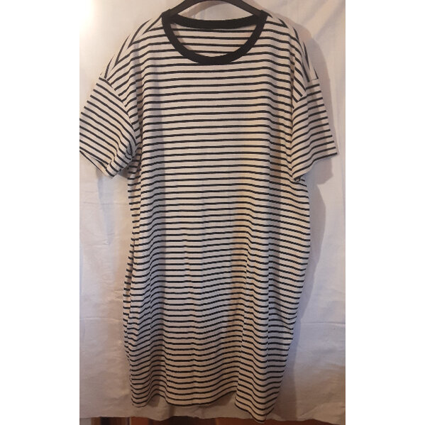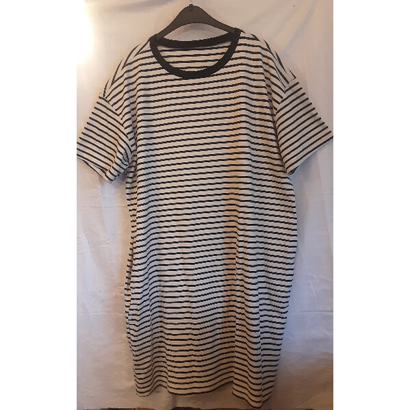 Kleid Sweatshirtstoff Streifen gestreift schwarz creme Seitentaschen Länge 105 cm, Unterarmweite 68 cm