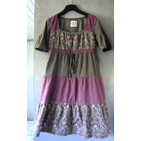 Leichtes Kleid mit hübschem Blümchen-Muster in fleider, pink, weiß und schwarz, mit angeschnittenen kurzen, weiten Ärmeln und gesmokter Taille. ... mehr