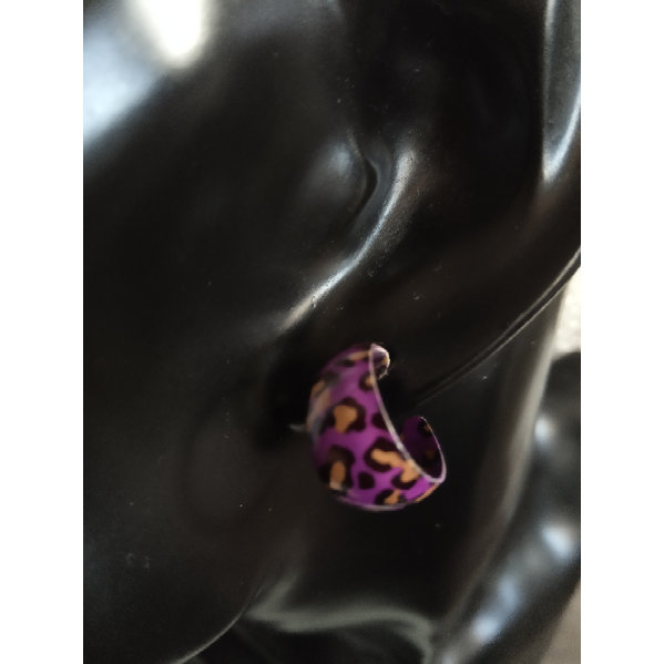 Kleine Ohrstecker Halb Creolen farbig Leo Muster