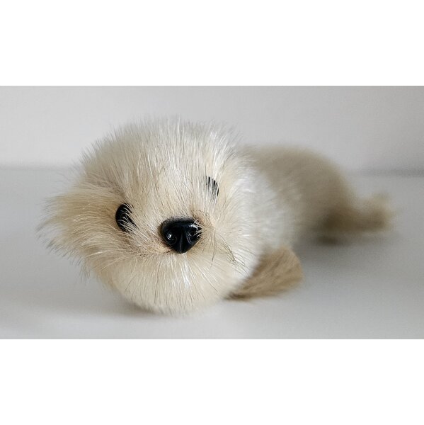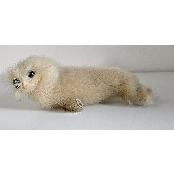 Niedliche kleine Robbe aus seidigem, weichen Fell - es könnte echtes Fell sein, das kann ich leider nicht genau sagen, da die Robbe schon etwas älter ist. Sie ist ca. 16 cm lang.
