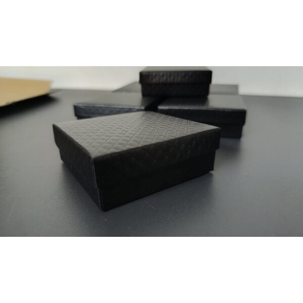 Sechs neue Schachteln in schwarz. Ca. 9x9x3cm. Mit Vlieseinlage.