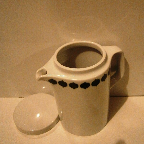 Kleine Teekanne, weiß mit grünem Muster, von Bauscher/Weiden. Hotelporzellan, nach Design aus den 70er Jahren, Fassungsvermögen 0,5 Liter, Höhe 15 cm.
