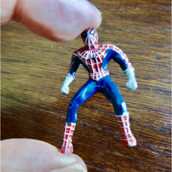 dieser niedliche Mini-Spiderman kann immer dabei sein.