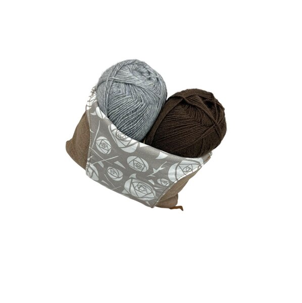 Eine Projekt-Tasche die am Handgelenk getragen werden kann, geeignet für Socken stricken und andere kleinere Projekte.