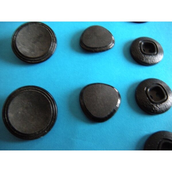 17 gemischte, ausgefallene, schwarze Knöpfe - verschiedenes Design - 2 bis 4 Loch, Stab- und Ösenknö
