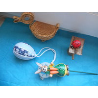 7cm großes Patchwork Ei, Handarbeit. 7cm großes Vogelhaus mit Marienkäfer, 8cm x 8cm x 5,5cm großes Küken Körbchen. Für ein Osterei. NR