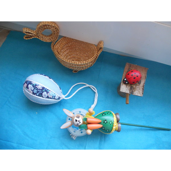 Teile teilweise neu. Holzteile, kleines Körbchen für 1 Osterei, Patchwork Ei.
