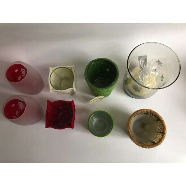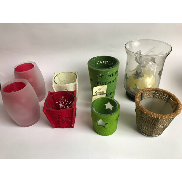 8 STÜCK weihnachtliche Lichtergläser, davon 4 Stück mit Filzhülle ca. 7 - 12 cm hoch, siehe Fotos, das größere Glas mit silbernen Sternen ca. 15 cm hoch und D = 10,5 cm, und dazu passende schöne Kugelkerze mit kl. silbernen Sternen.