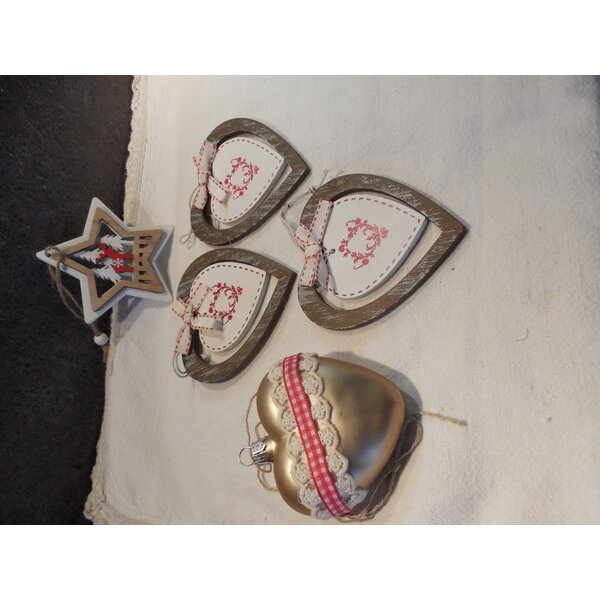 3x Holz Herzen 10cm x 9,5. das weiße Herz hängt lose drinnen.