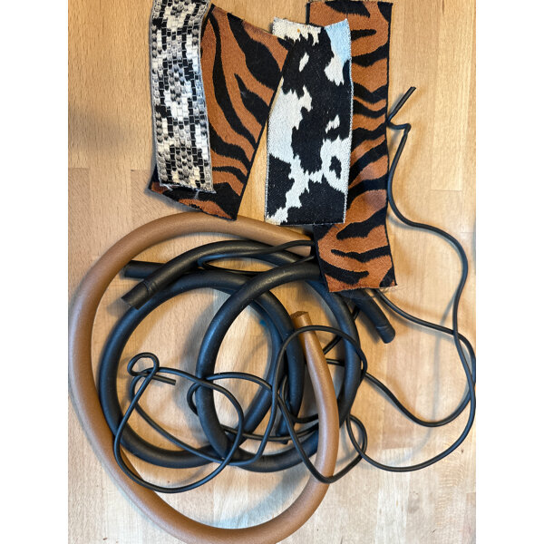 Unbenutzt, aber schon lange gelagert. Es gehören Moosgummischnüre und Stoffabschnitte dazu, die sind aber in nicht mehr so schönem Zustand