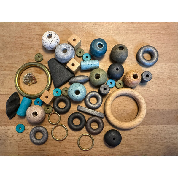 Sammlung aus sehr schönen, hochwertigen Perlen und Ringen in verschiedenen Größen (Material überwiegend Keramik, ansonsten Holz und Metall). Einige Teile haben einen schönen Glitzereffekt. Auf Wunsch lege ich noch die 2 Tütchen vom 3. Bild mit kleinen Kunststoffperlen dazu