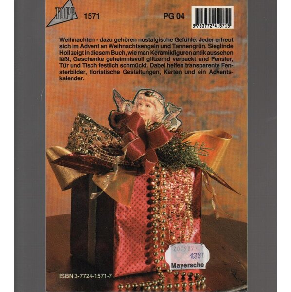 *** 2:1" Angeot *** Weihnachten - dazu gehören nostalgische Gefühle! Jeder erfeut sich im Advent an Weihnachtsengeln und Tannengrün. Sieglinde Holl zeigt in diesem Heft, wie man Keramikfiguren "antik" aussehen läßt, Geschenke "geheimnisvoll" glitzernd verpackt und Fenster, Tür und Tisch festlich schmückt. Dabei helfen transparente Fensterbilder, floristische Gestaltungen, Karten und ein Adventskalender.