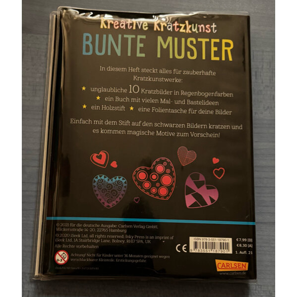 Einfach mit dem Stift auf den schwarzen Bildern kratzen und es entstehen kunterbunte Muster. Die Kunstwerke können anschließend in tolle Geschenke oder Dekorationen verwandelt werden: Die Ideen dazu liefert das beiliegende Anleitungsheft.