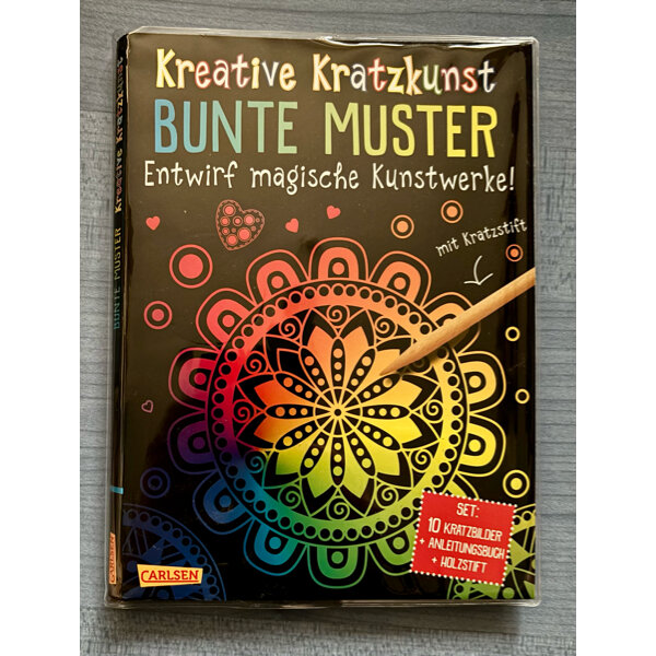 Kreative Kratzkunst: Bunte Muster - Set mit 10 Kratzbildern, Anleitungsbuch und Holzstift