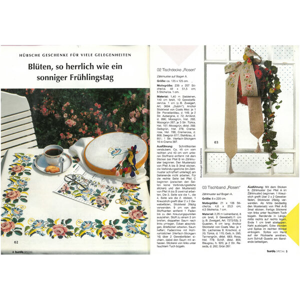kreuzstich sticken kissen tischdecken schleifen borten burda