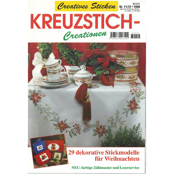 Hier sind viele Kreuzstich-Arbeiten farbig abgebildet. Die Stickmuster und Farbcodes sind in ebenfalls farbig abgebildet.