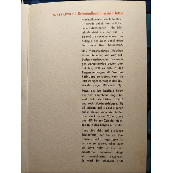 Irene ahnt nicht, dass die junge Schiläuferin, der sie ihr Vertrauen schenkt, ausgezogen ist, um sie zu suchen. Aber auch bei Jutta Helm ist aus dem dienstlichen Interesse längst ein menschliches geworden. Es wird ihr schönsterFall!