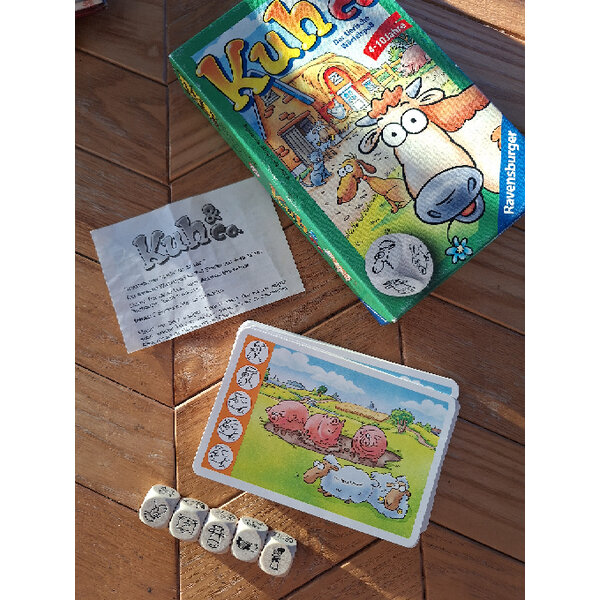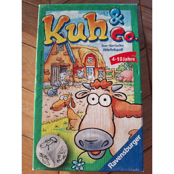 Das Spiel wurde oft gespielt, ist aber in einem guten Zustand. Die Karten sind etwas abgenutzt, aber intakt und vollständig. Eine Karte weist einen kleinen Fleck auf der Rückseite auf. Die Anleitung ist etwas verknickt. Die Würfel sind etwas nachgedunkelt. Die Ecken und Kanten der Schachtel sind angestoßen. Das Spiel stammt aus einem tierfreien Nichtraucherhaushalt.